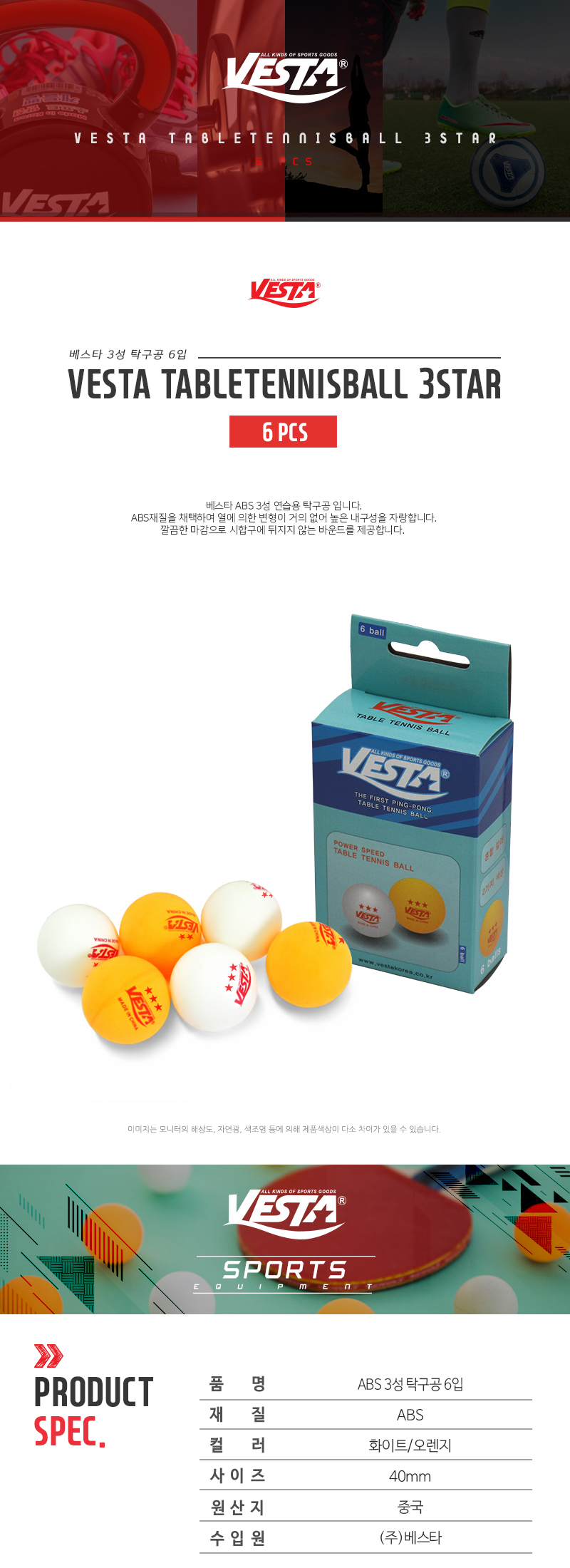 ■ 품명 및 모델명 : 탁구공 (6입)(베스타)