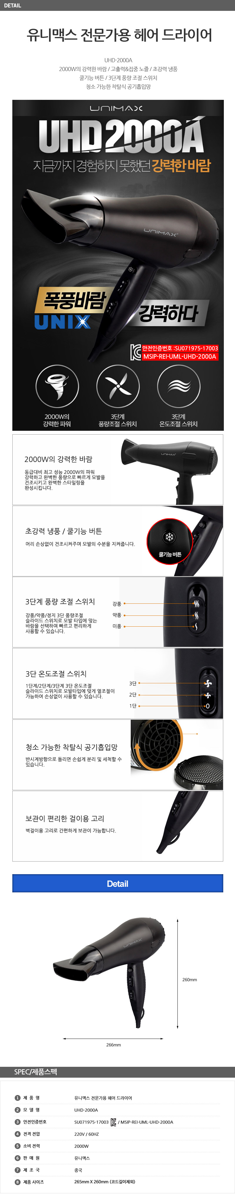 ■ 품명 및 모델명 : 유니맥스 전문가용 드라이기 UHD-2000A