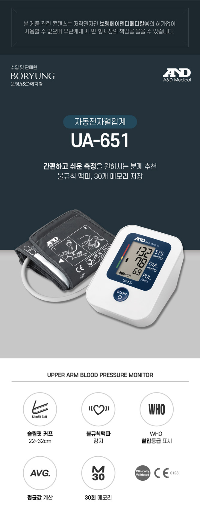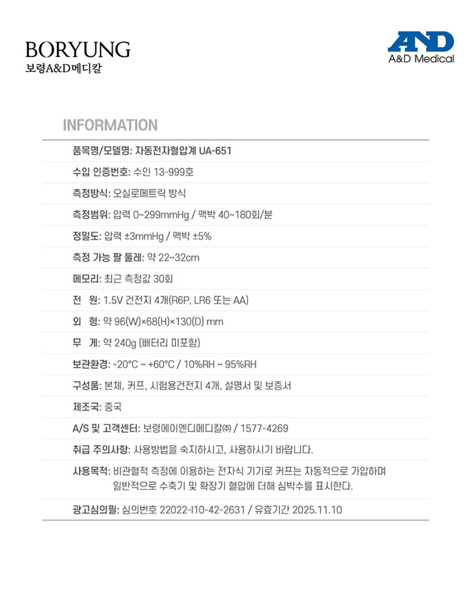 [업체별도배송]자동 전자협압계(UA-651/팔뚝형/보령에이엔디메디칼)/개