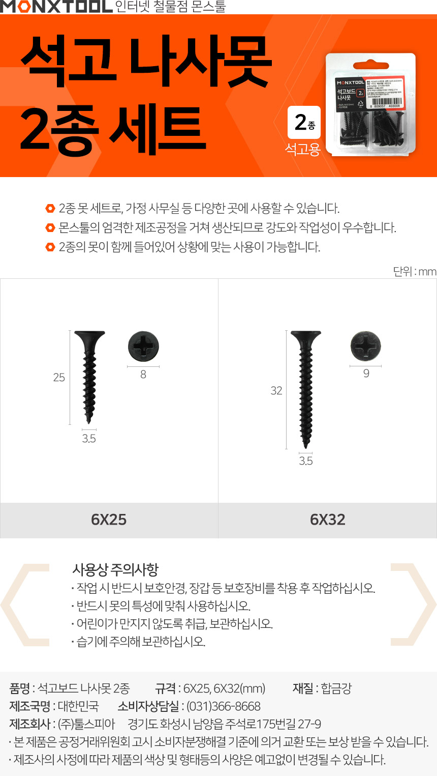 ■ 품명 및 모델명 : 석고보드 나사못 2종세트
