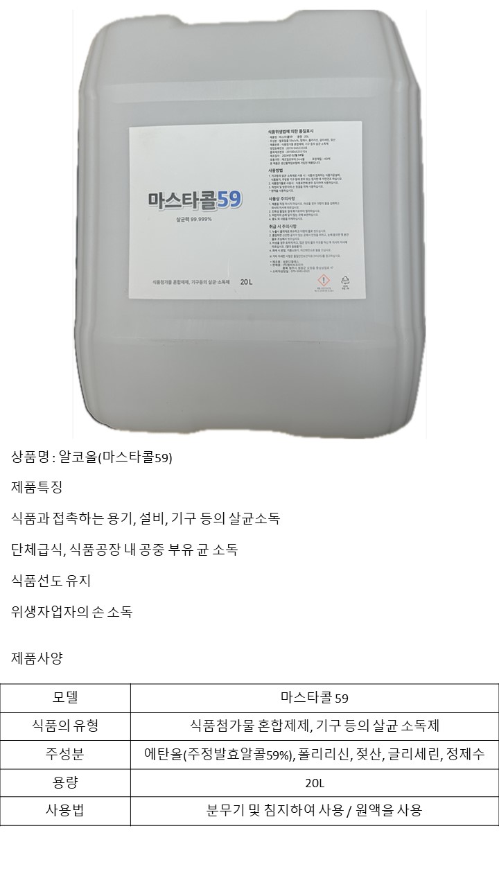 ■ 품명 및 모델명 : 알코올(마스타콜59/59%/20L/성운디엘에스)