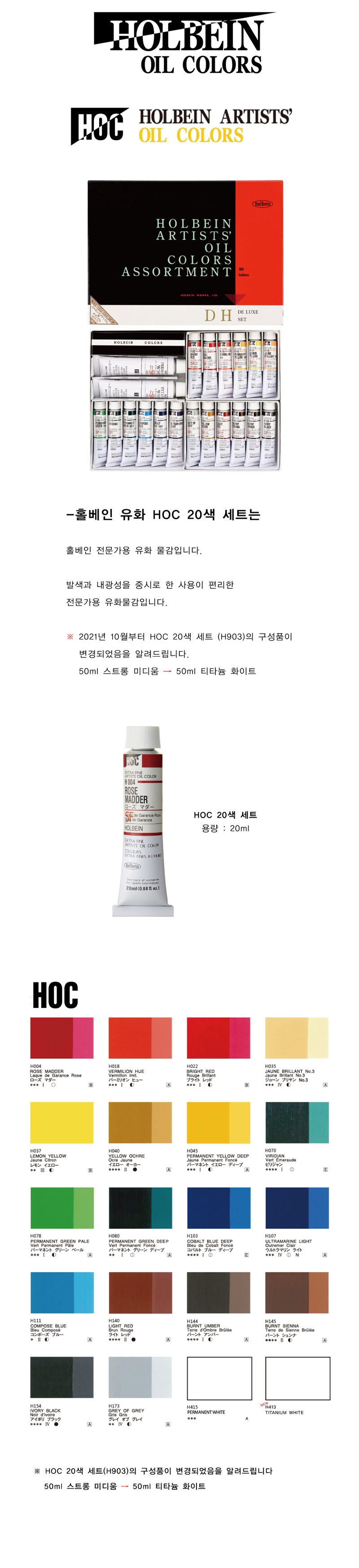 ■ 품명 및 모델명 : 홀베인 HOC 유화물감 20ml 20색
