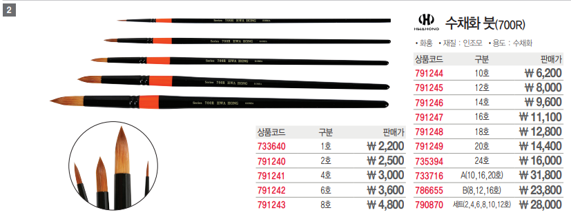 [업체별도배송]수채화붓(화홍/700R/1호)/개