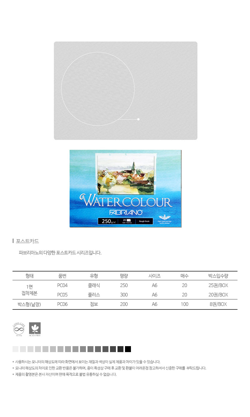 ■ 품명 및 모델명 : 포스트카드 PC04 파브리아노 워터칼라 클래식 250g A6 20매
