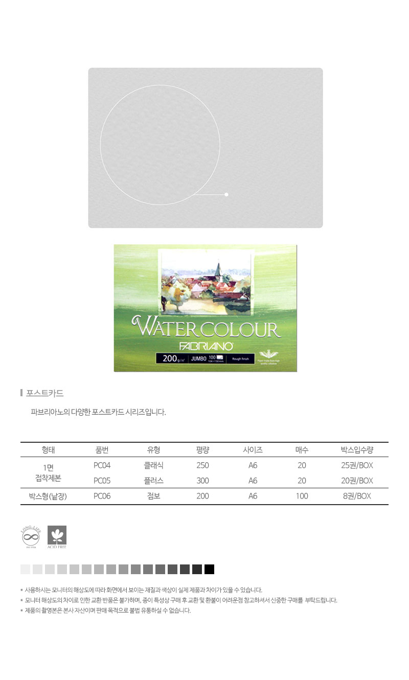 ■ 품명 및 모델명 : 포스트카드 PC06 파브리아노 워터칼라 점보 200g A6 100매