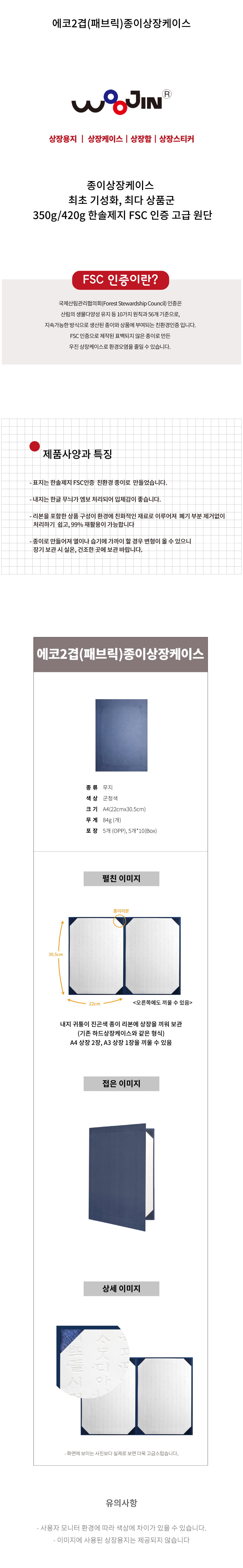 ■ 품명 및 모델명 : 에코 2겹(패브릭) 종이상장케이스(5개입/무지/우진)