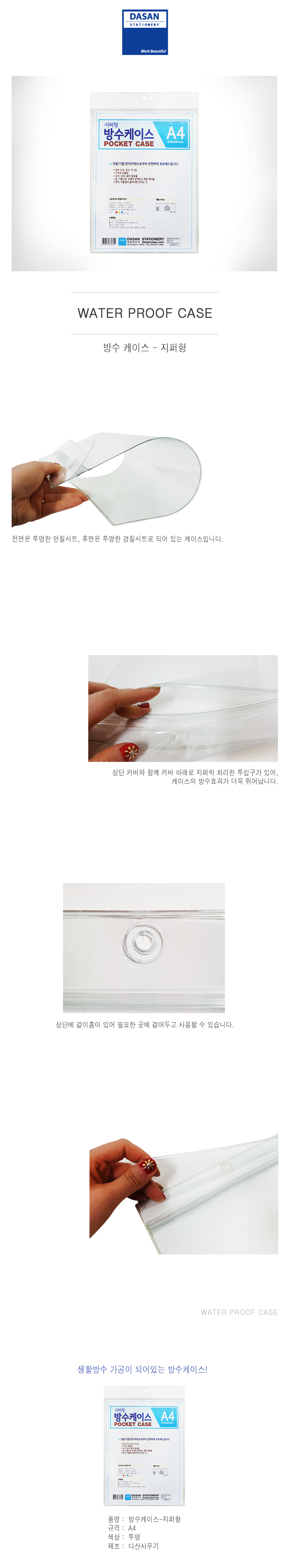 ■ 품명 및 모델명 : 생활방수케이스(A4/투명/지퍼형/다산)
