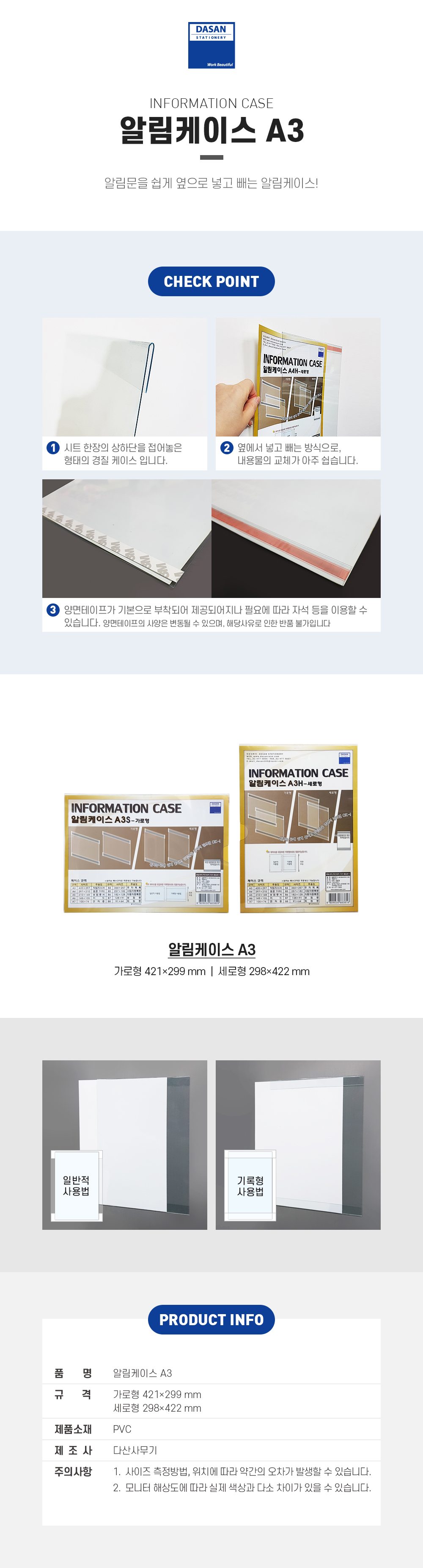 ■ 품명 및 모델명 : 알림케이스(A3/투명/가로형/다산)