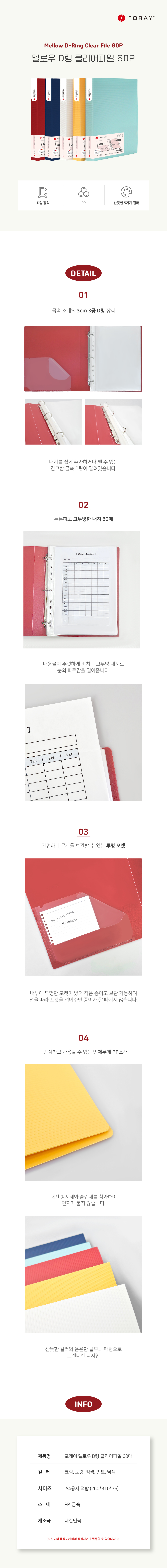 ■ 품명 및 모델명 : 멜로우 클리어화일(A4/민트/60매/D링/OF3607/포레이)