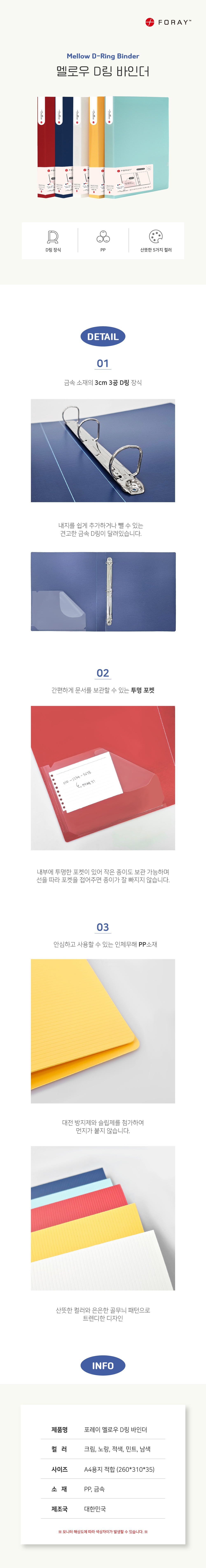■ 품명 및 모델명 : 멜로우 3공 D링 바인더(A4/민트/OF9037/포레이)