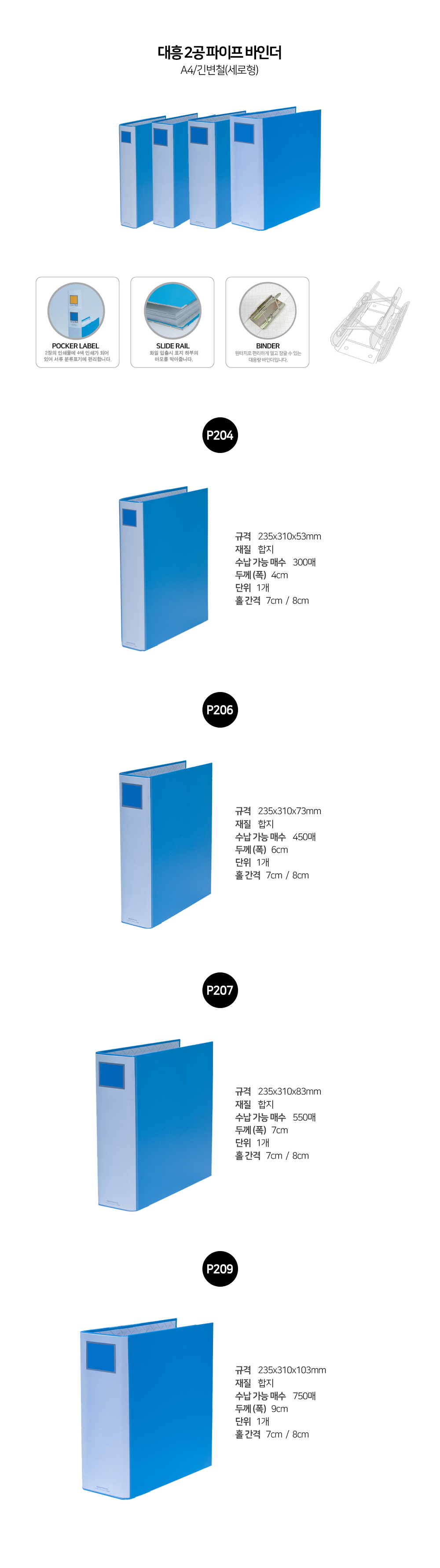 ■ 품명 및 모델명 : P209 파이프화일A4 90-70(세로형)