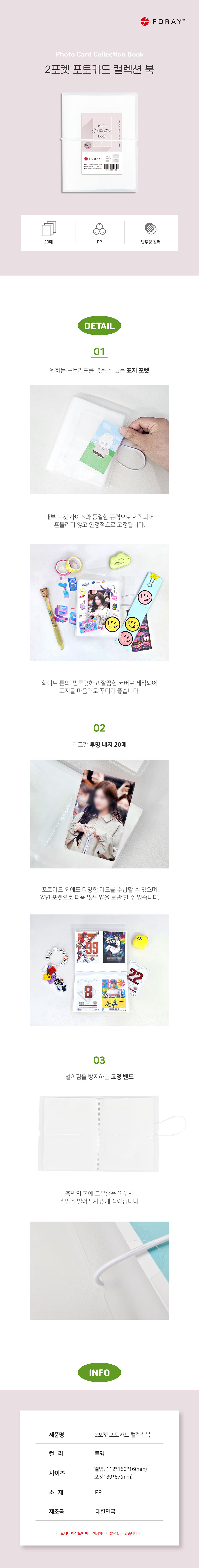 ■ 품명 및 모델명 : 포토카드앨범(반투명/2포켓/20P/포레이)
