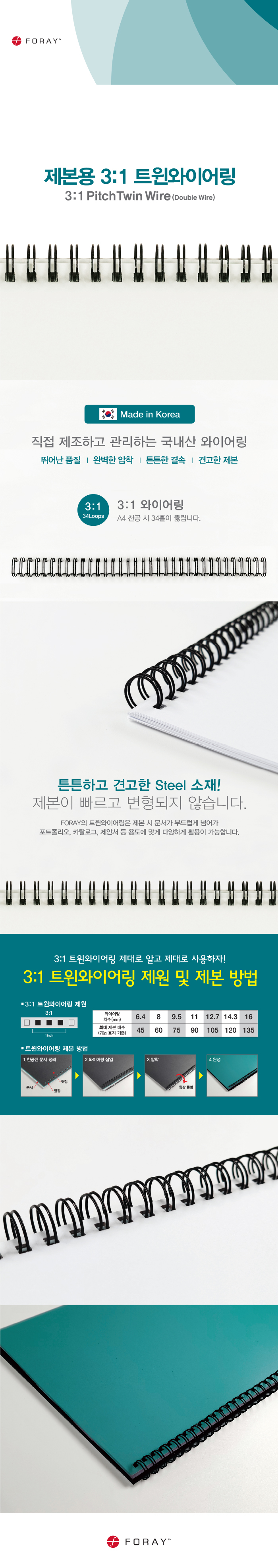 트윈와이어링(14.3mm/3:1/흑/100개/포레이)/팩