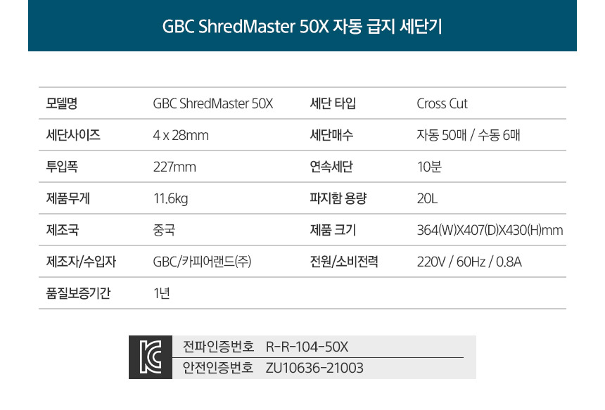 ■ 품명 및 모델명 : 중)AF CC세단기 GBC SHREDMASTER 50X