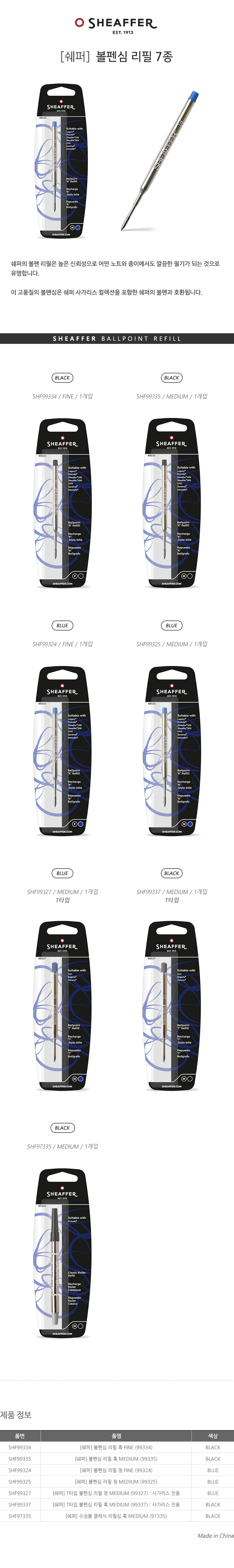 볼펜심 리필 청 MEDIUM(99325/Medium/EA/블루/SHEAFFER)/개