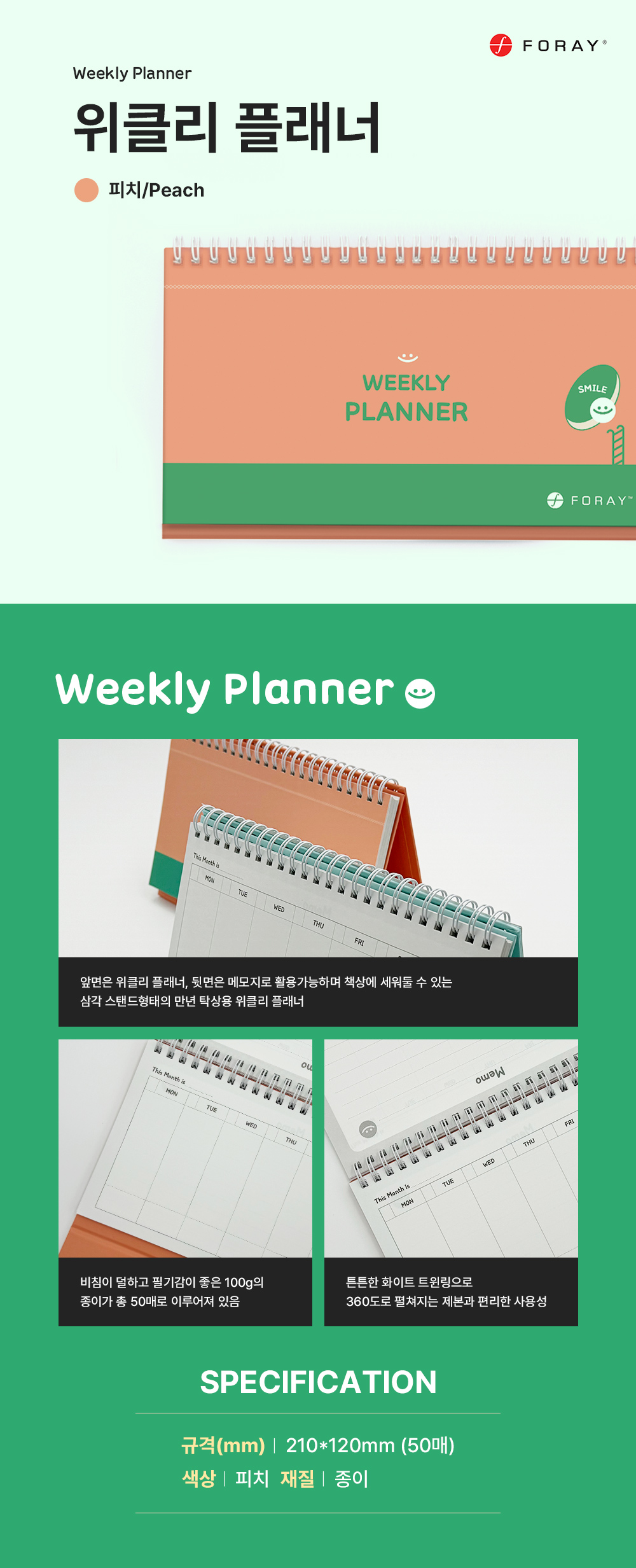 위클리 플래너(피치/50매/Foray)/개
