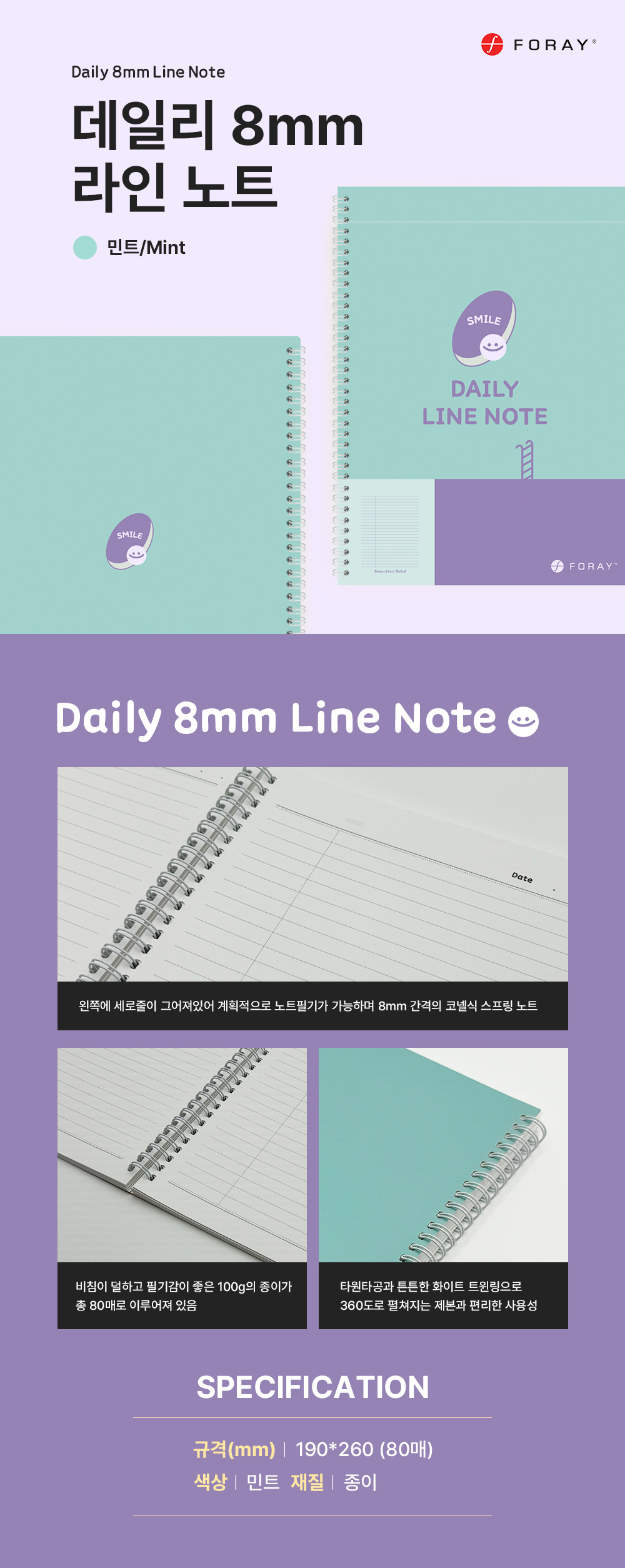 ■ 품명 및 모델명 : 데일리 8mm 라인 노트(민트/Foray)