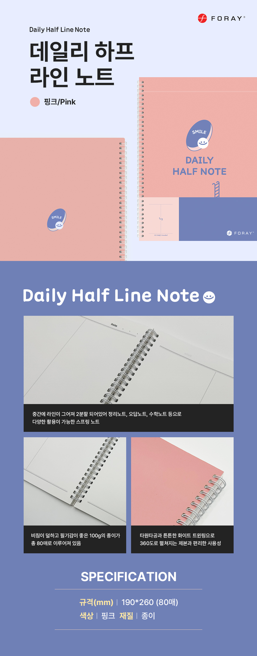 데일리 하프 라인 노트(핑크/80매/Foray)/개