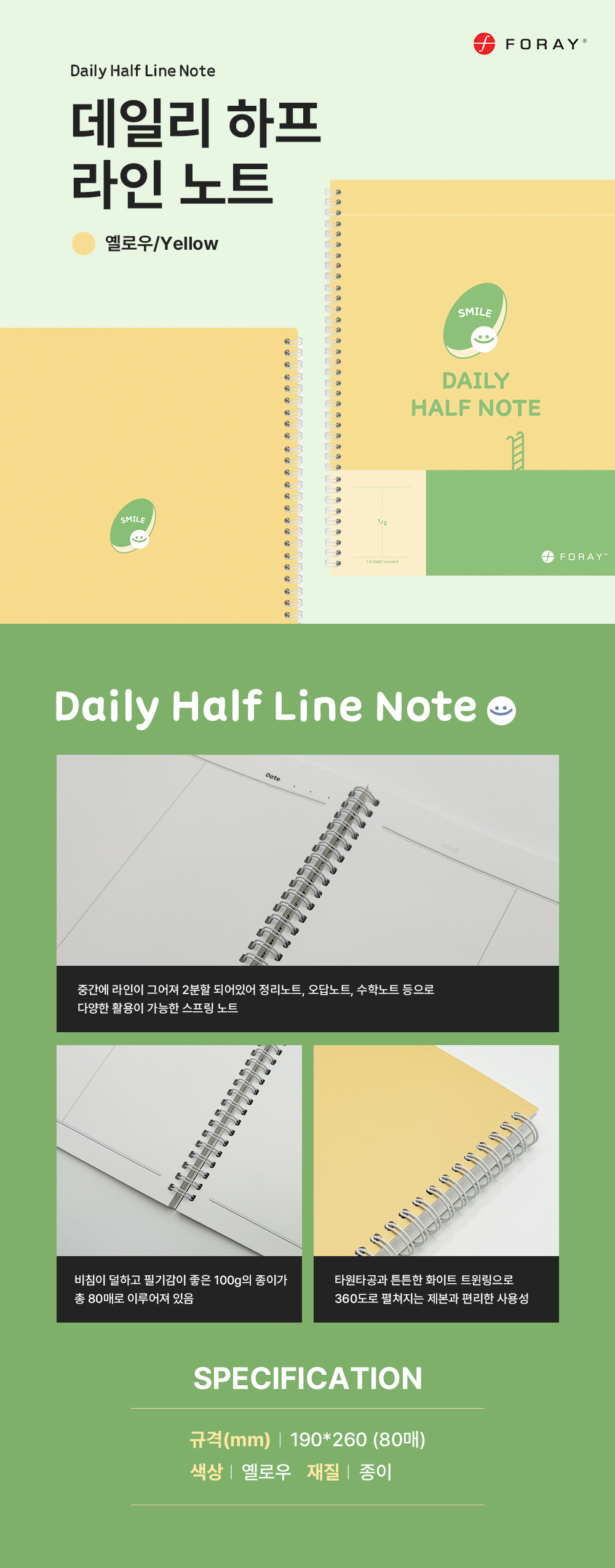 데일리 하프 라인 노트(옐로우/80매/Foray)/개
