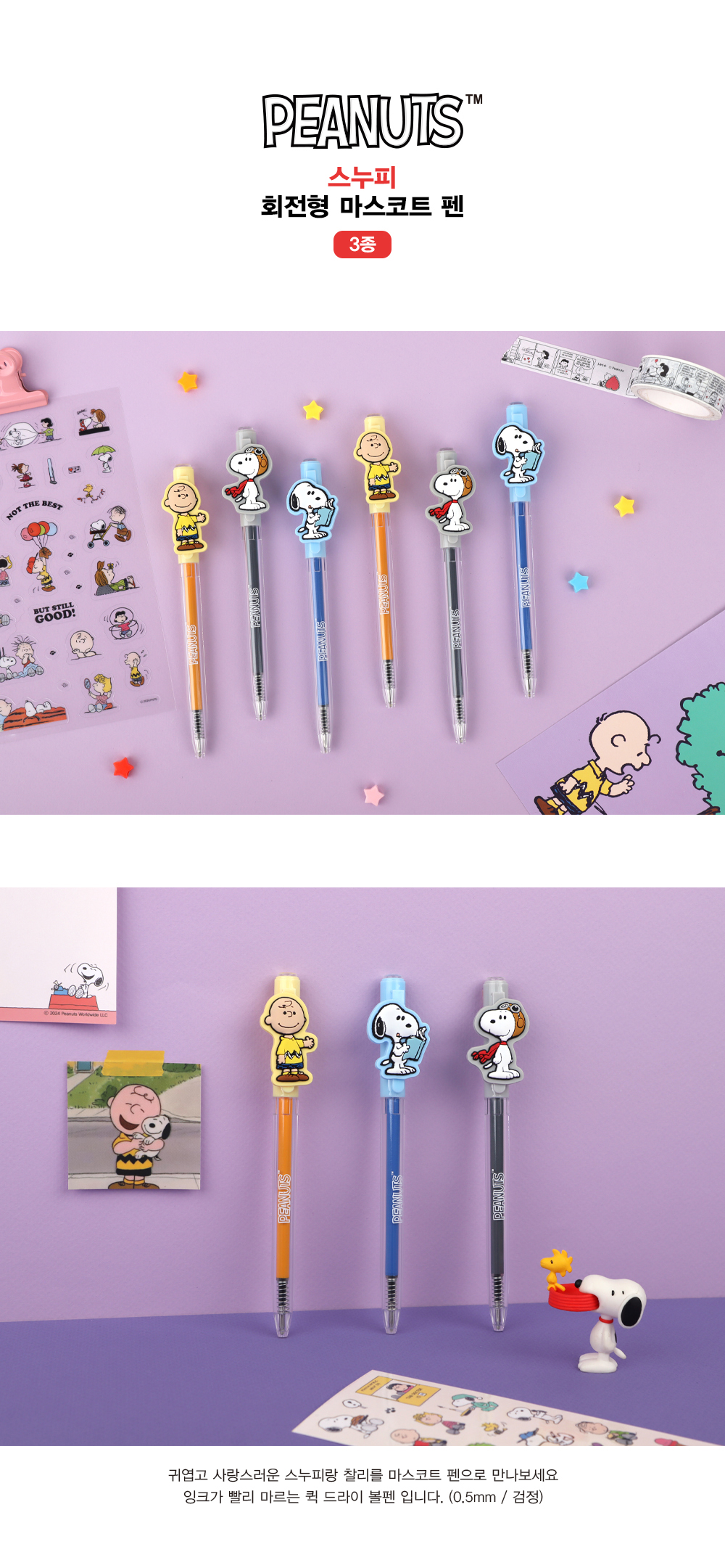 피너츠 PVC 회전볼펜(찰리/옐로우/에이치엠플러스)/개