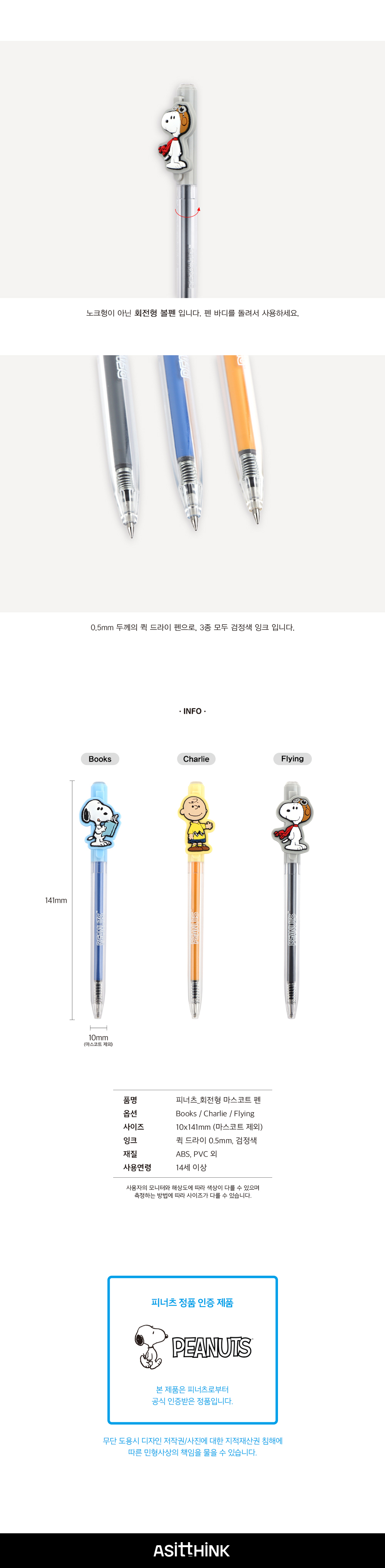 ■ 품명 및 모델명 : 피너츠 PVC 회전볼펜(플라잉/그레이/에이치엠플러스)
