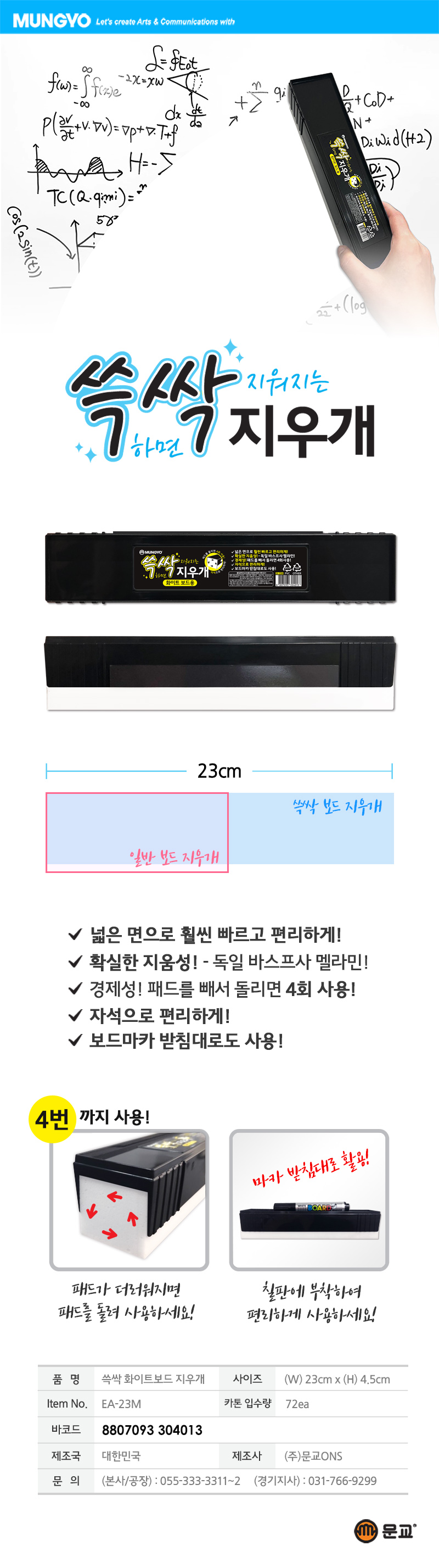 ■ 품명 및 모델명 : 쓱삭 보드지우개(EA-23M/문교)