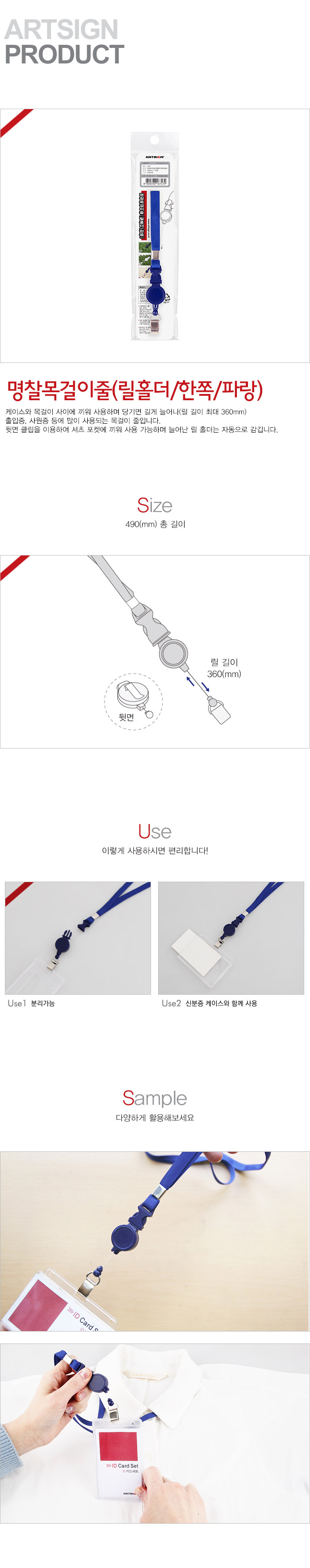 [업체별도배송]명찰목걸이줄(릴홀더/한쪽)(파랑/2391/M0421/아트사인)/개