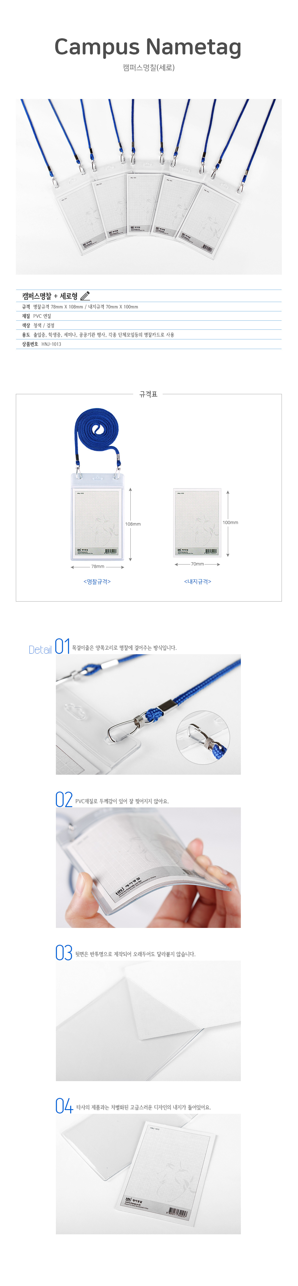 ■ 품명 및 모델명 : 캠퍼스명찰(1갑/100개/세로/명찰78x108/내지70x100/하나제이)