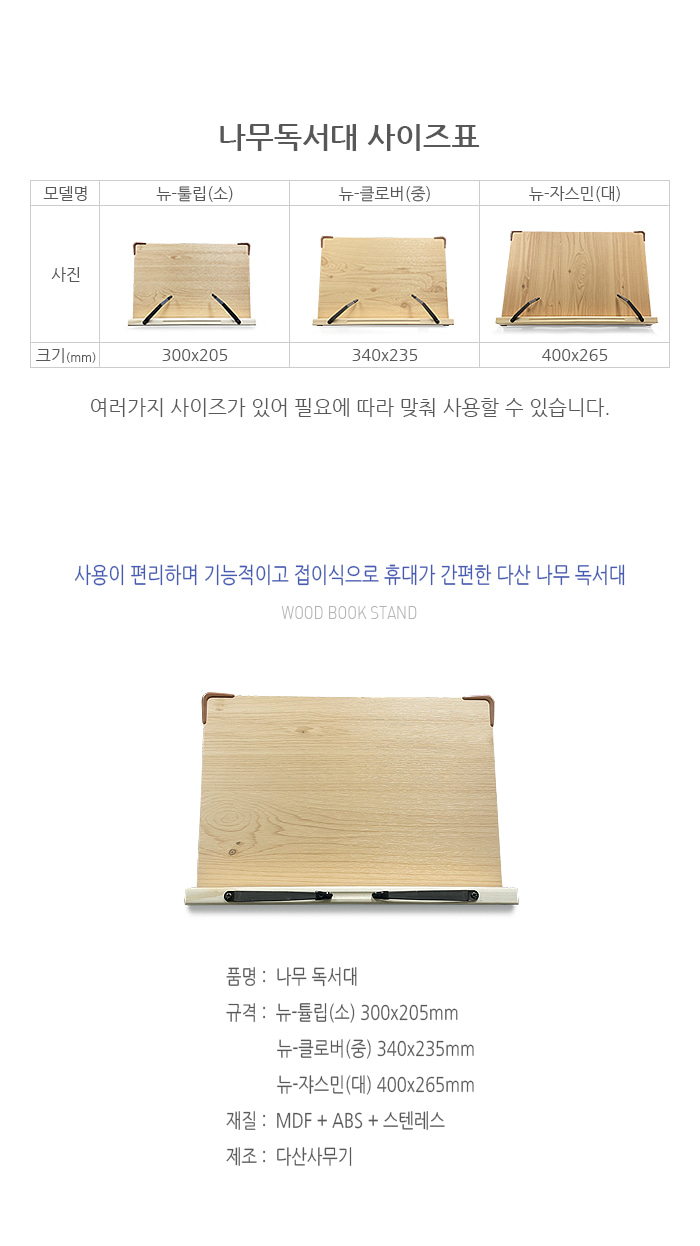 ■ 품명 및 모델명 : 나무독서대(소/튤립/다산사무기)