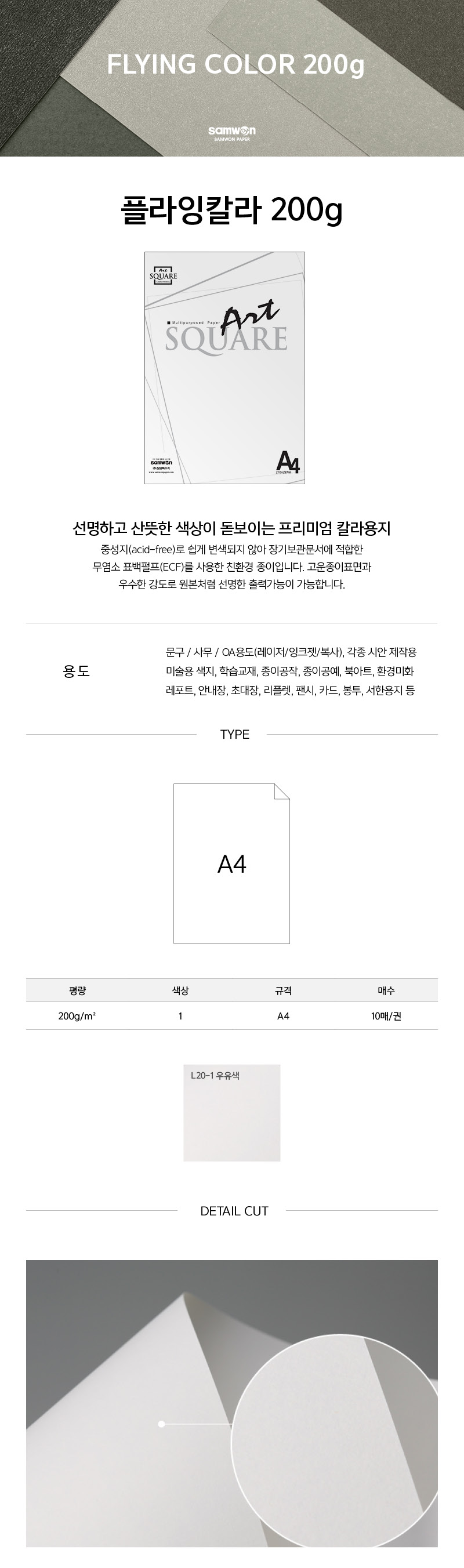 플라잉칼라 A4(우유색/200g/10매/삼원)/팩