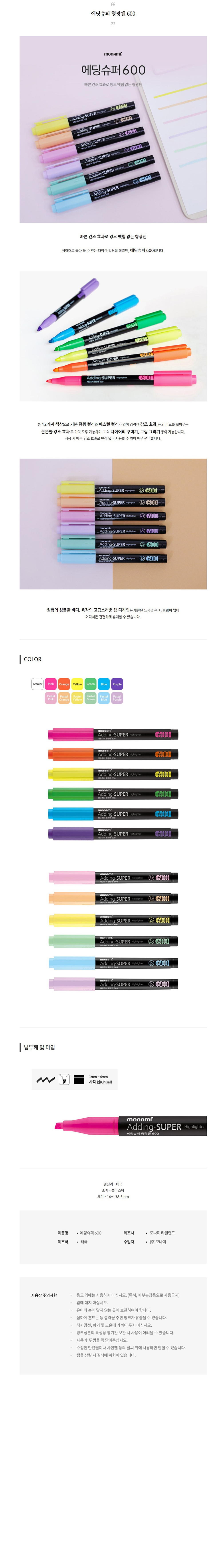 ■ 품명 및 모델명 : 에딩슈퍼 형광펜 600 (Pastel Yellow)