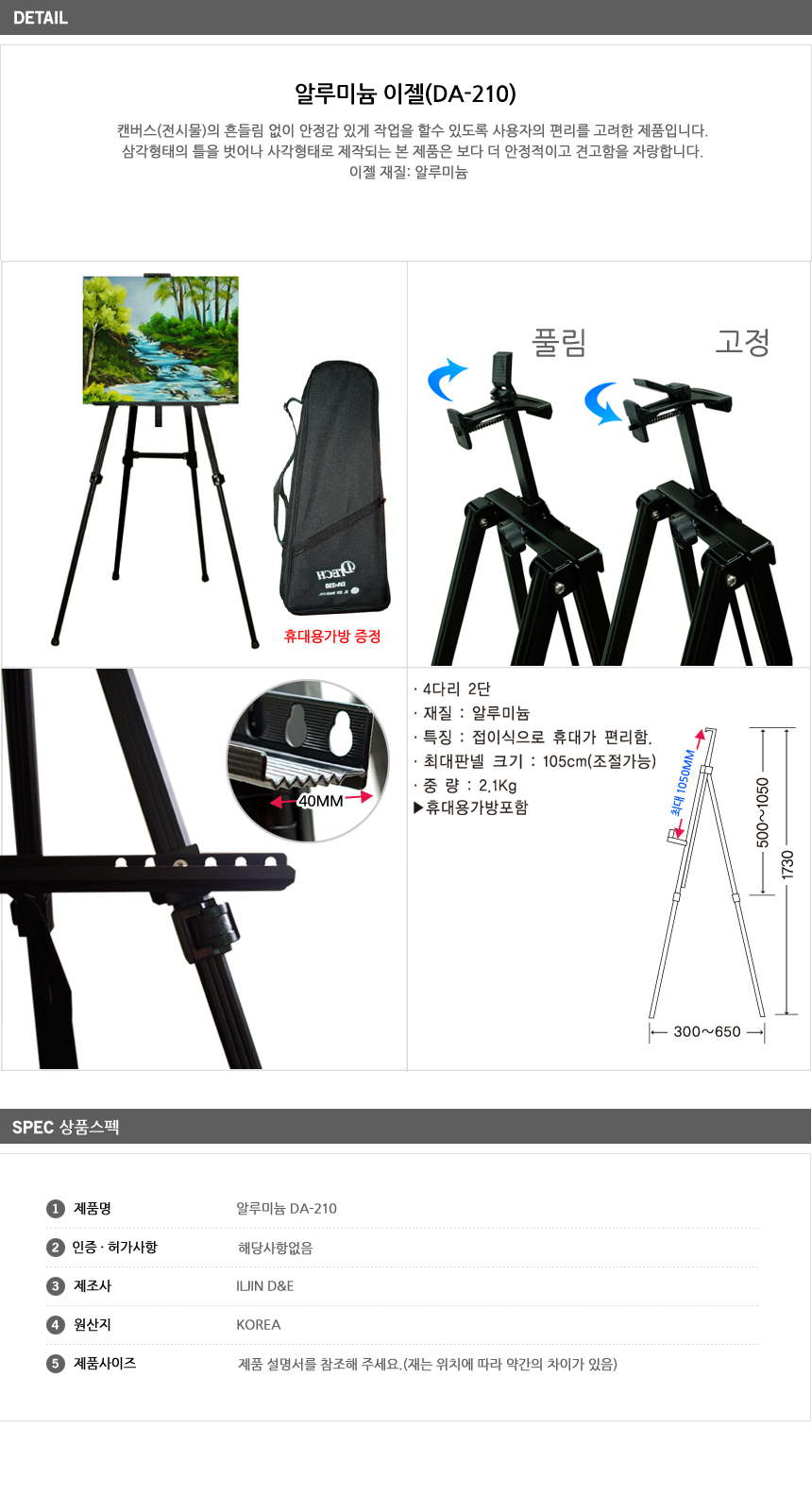 ■ 품명 및 모델명 : 휴대용 4단 알루미늄 이젤(DA-210)