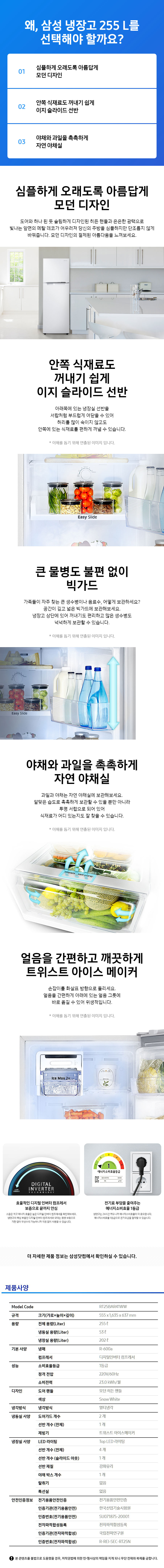 ■ 품명 및 모델명 : 삼성 2도어 냉장고 255L(RT25BAR41WW/스노우화이트/삼성전자)