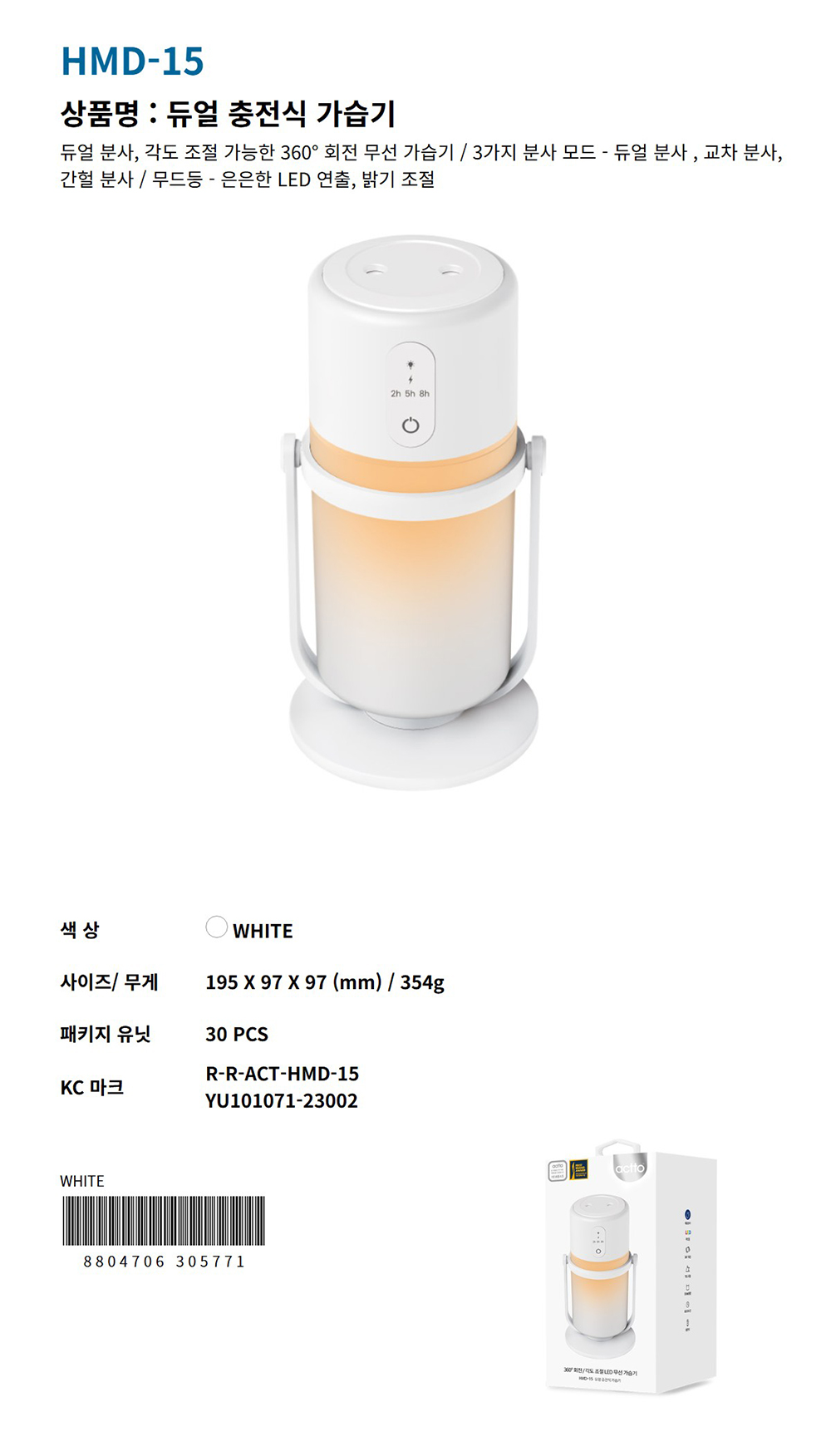 ■ 품명 및 모델명 : 듀얼 충전식 가습기(HMD-15/엑토)