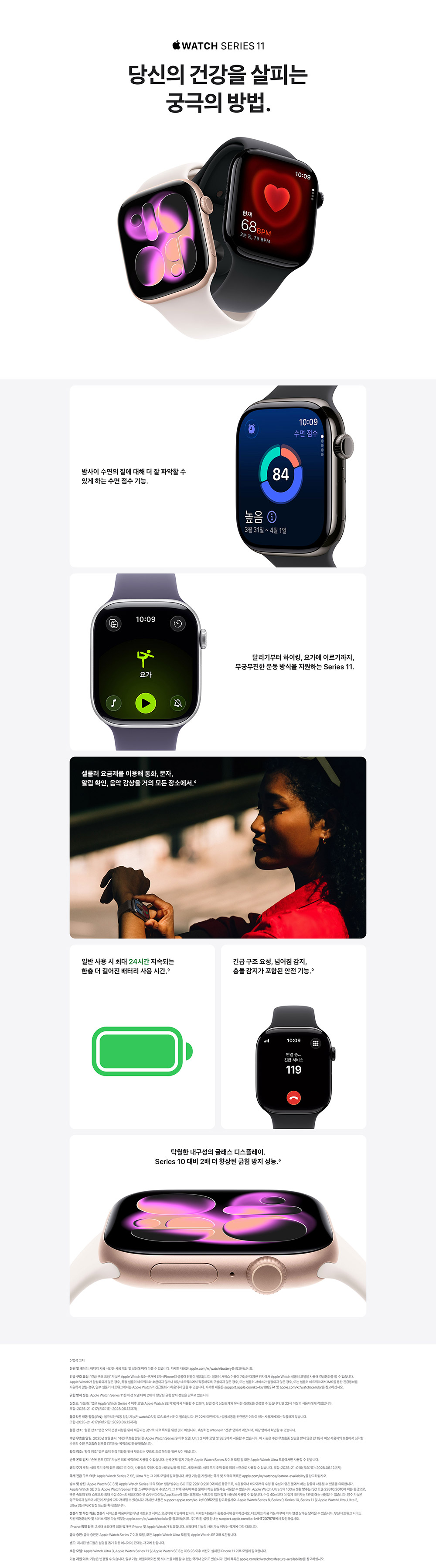 애플워치11세대(MEU64KH/A/42mm/실버/스포츠밴드S,M사이즈/애플)/개
