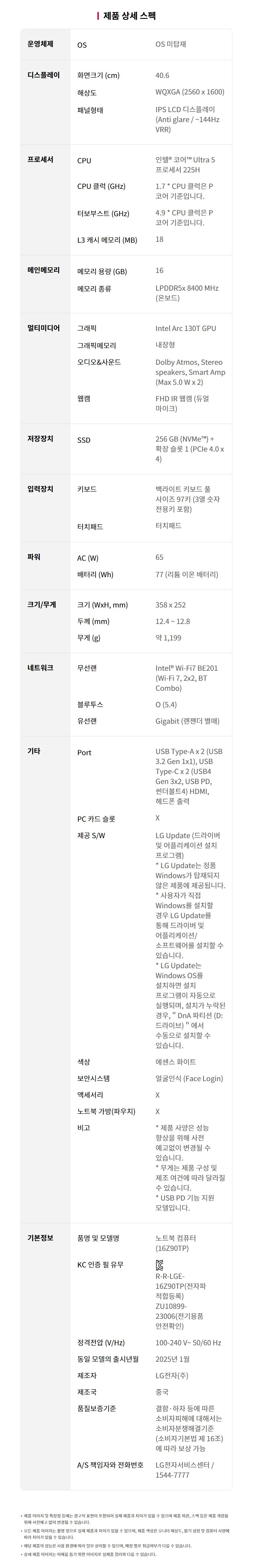 ■ 품명 및 모델명 : [업체별도배송]그램 프로16 노트북(16ZD90TP-GX56K/16"/FreeDos/LG)
