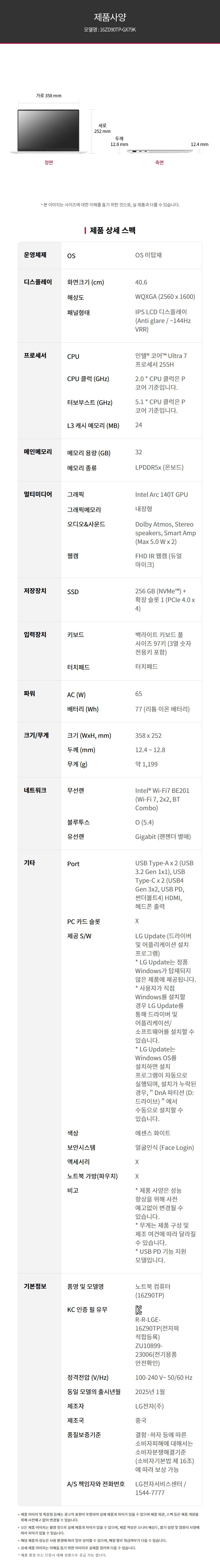 ■ 품명 및 모델명 : [업체별도배송]그램 프로16 노트북(16ZD90TP-GX79K/16"/FreeDos/LG)