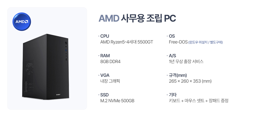 ■ 품명 및 모델명 : 조립식 데스크탑(AMD R5/윈도우미설치/사무용)