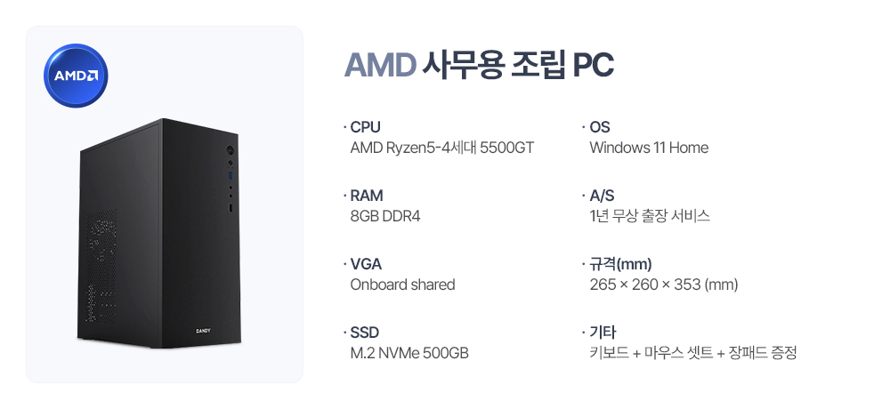 ■ 품명 및 모델명 : 조립식 데스크탑(AMD R5/윈도우11 설치/사무용)