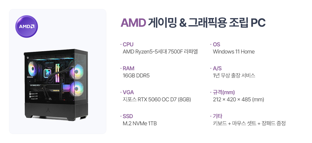 ■ 품명 및 모델명 : 조립식 데스크탑(AMD R5 Gaming7/윈도우11 설치/멀티미티어/게이밍)