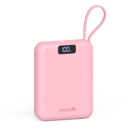 PD 22.5W 케이블 일체형 미니 보조배터리(VM-PA10MNCP/핑크/10000mAh/VALUM)/개
