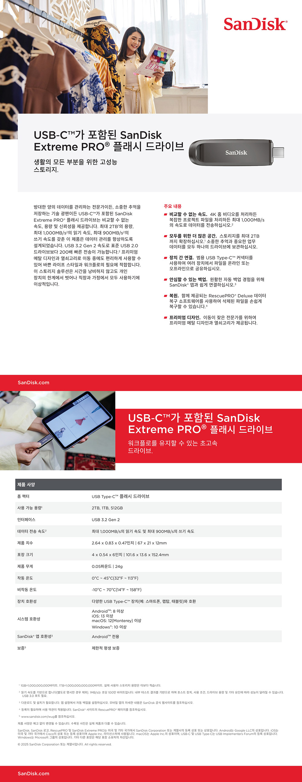■ 품명 및 모델명 : [업체별도배송]Extreme Pro PSSD(CZ890/Type C/1TB/Sanadisk)
