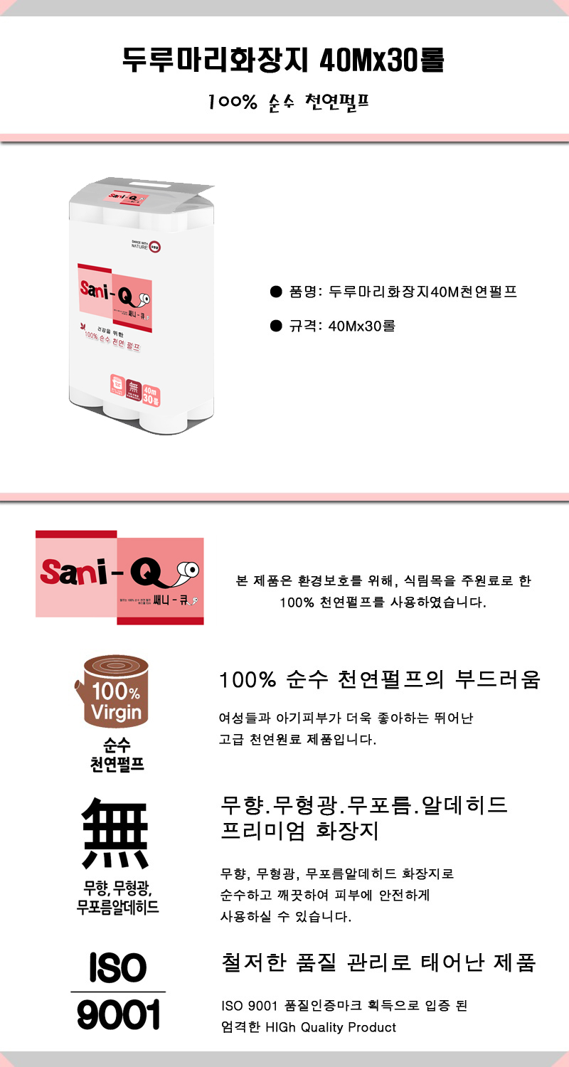 ■ 품명 및 모델명 : [업체배송]쎄니큐 2겹 화장지(1팩/40M*30롤/천연펄프/두루마리)