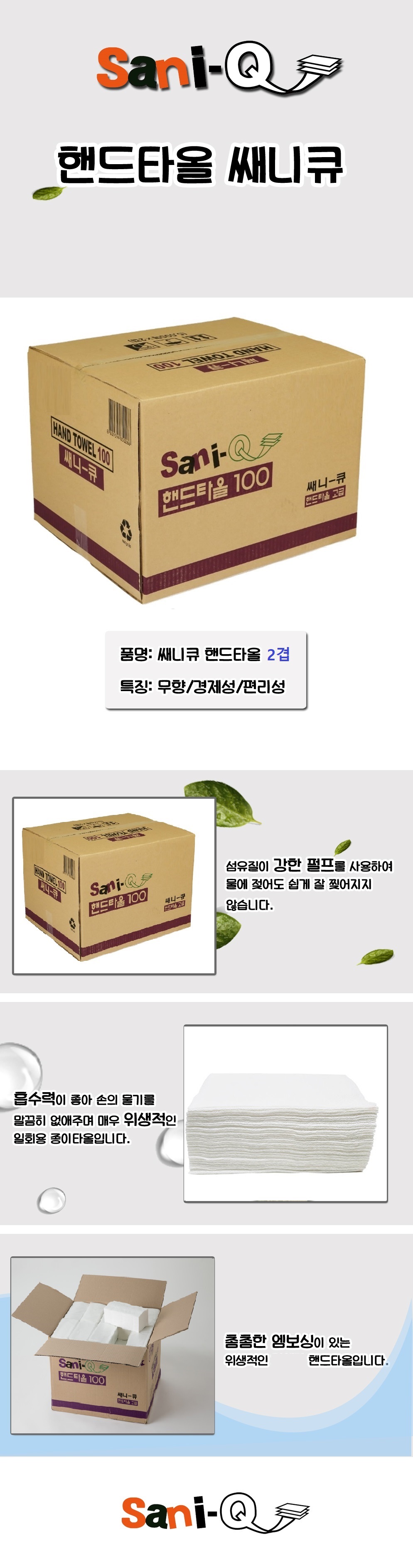 ■ 품명 및 모델명 : [업체배송]쎄니큐 페이퍼타올 핸드타월 백색 5000매(100매*50밴드/215mm/2겹)