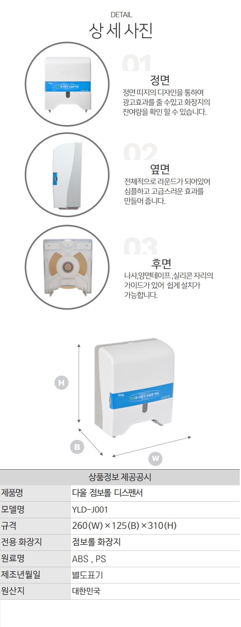■ 품명 및 모델명 : [업체배송]점보롤화장지 디스펜서 윈도우(YLD-J001/키형/260x310x125mm/유일실업)