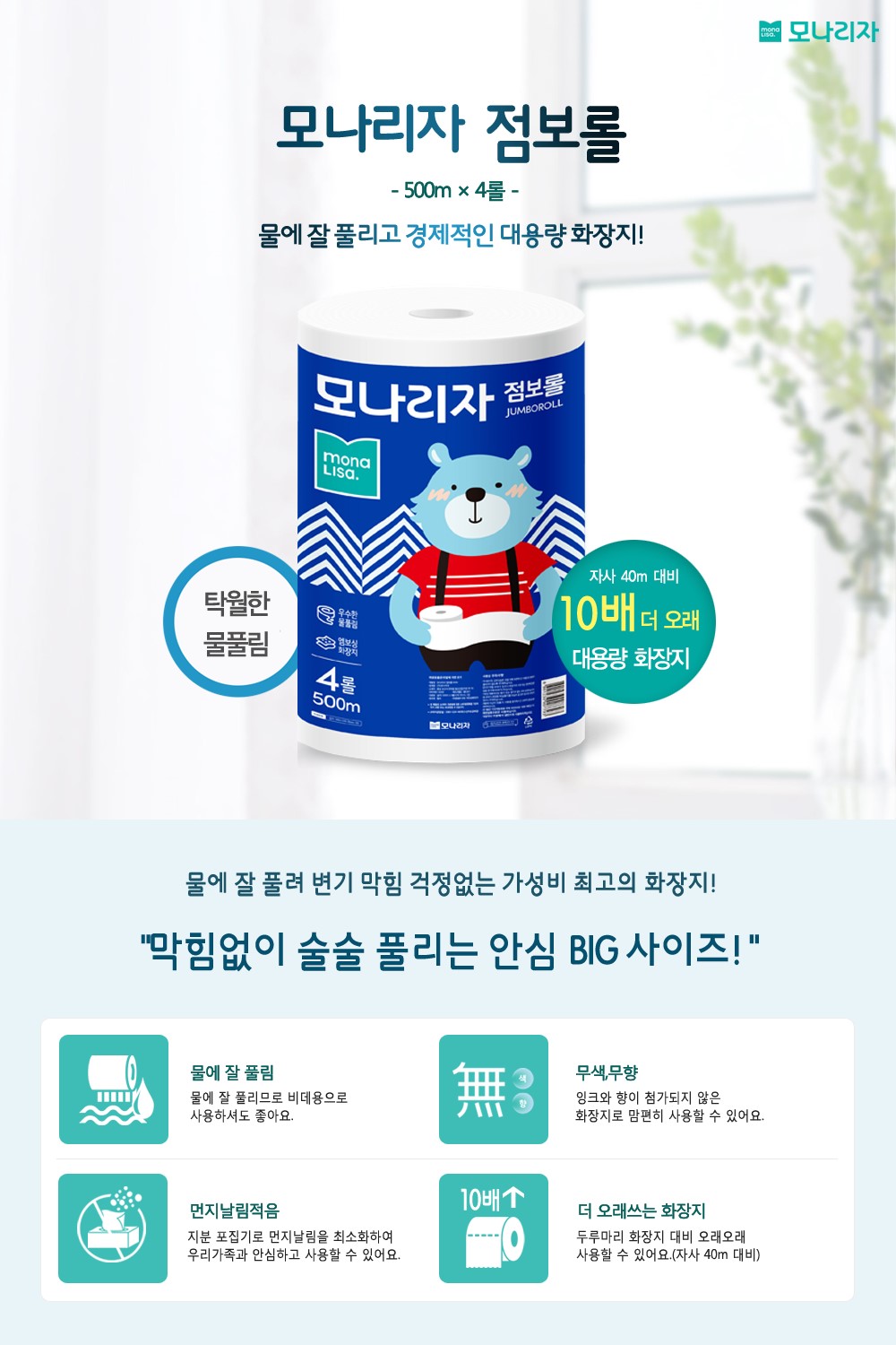 모나리자 점보롤 500m*4롤(290*290*380mm/1겹)/개
