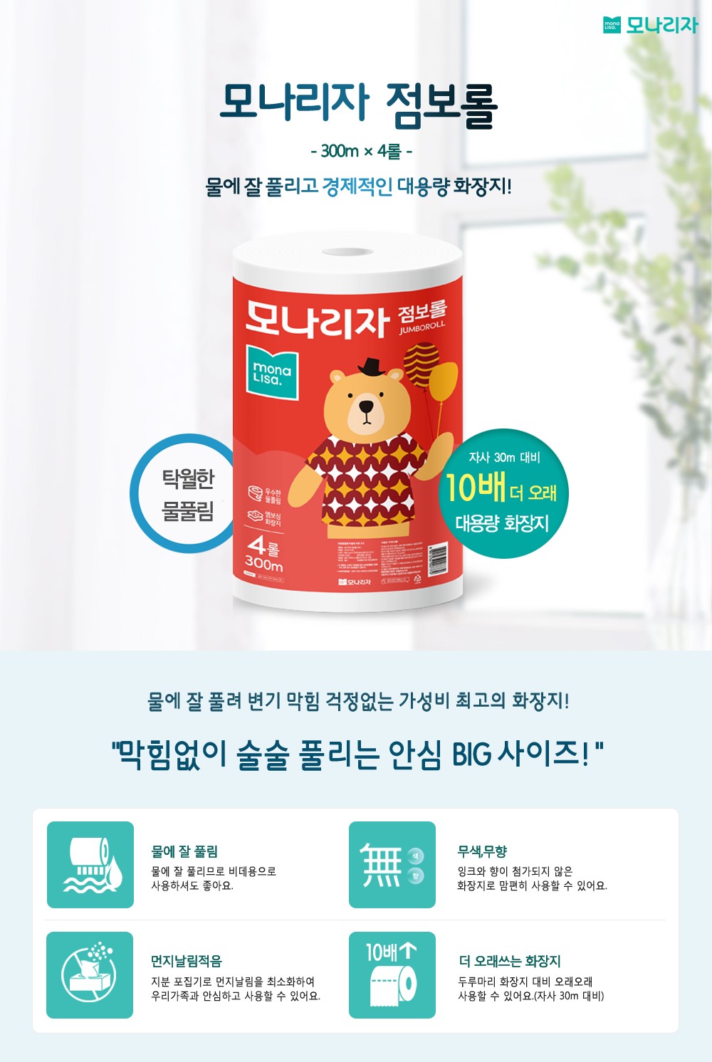 모나리자 점보롤 300m*4롤(290*290*380mm/2겹)/개