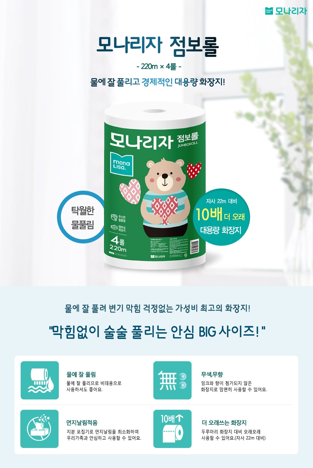 모나리자 점보롤 220m*4롤(290*290*380mm/2겹)/개