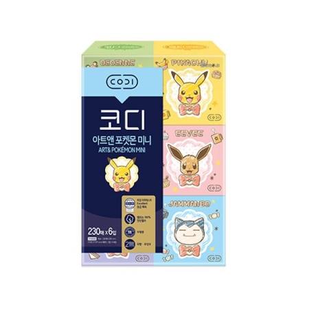 코디 2겹 아트앤 포켓몬 미니 갑티슈 230매*6입(215*107mm)/개