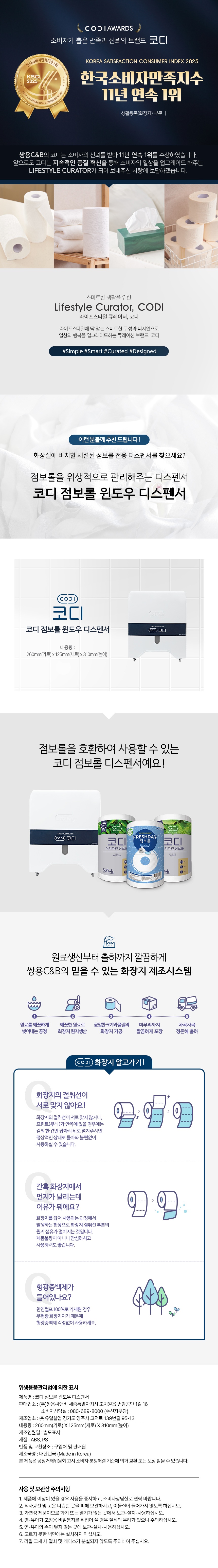 ■ 품명 및 모델명 : 코디 점보롤 윈도우 디스펜서(260*125*310mm)
